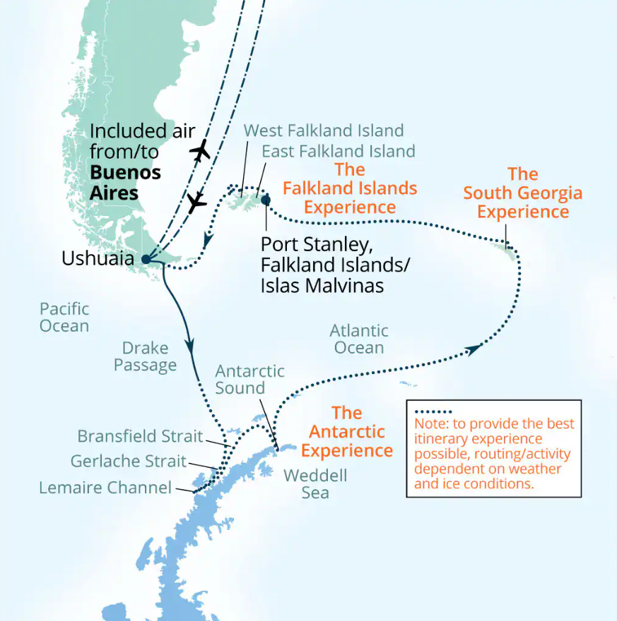 The itinerary is a guide only and is subject to change due to weather and ice conditions. Your Captain and Expedition Leader will make the necessary adjustments to ensure the best possible experience.