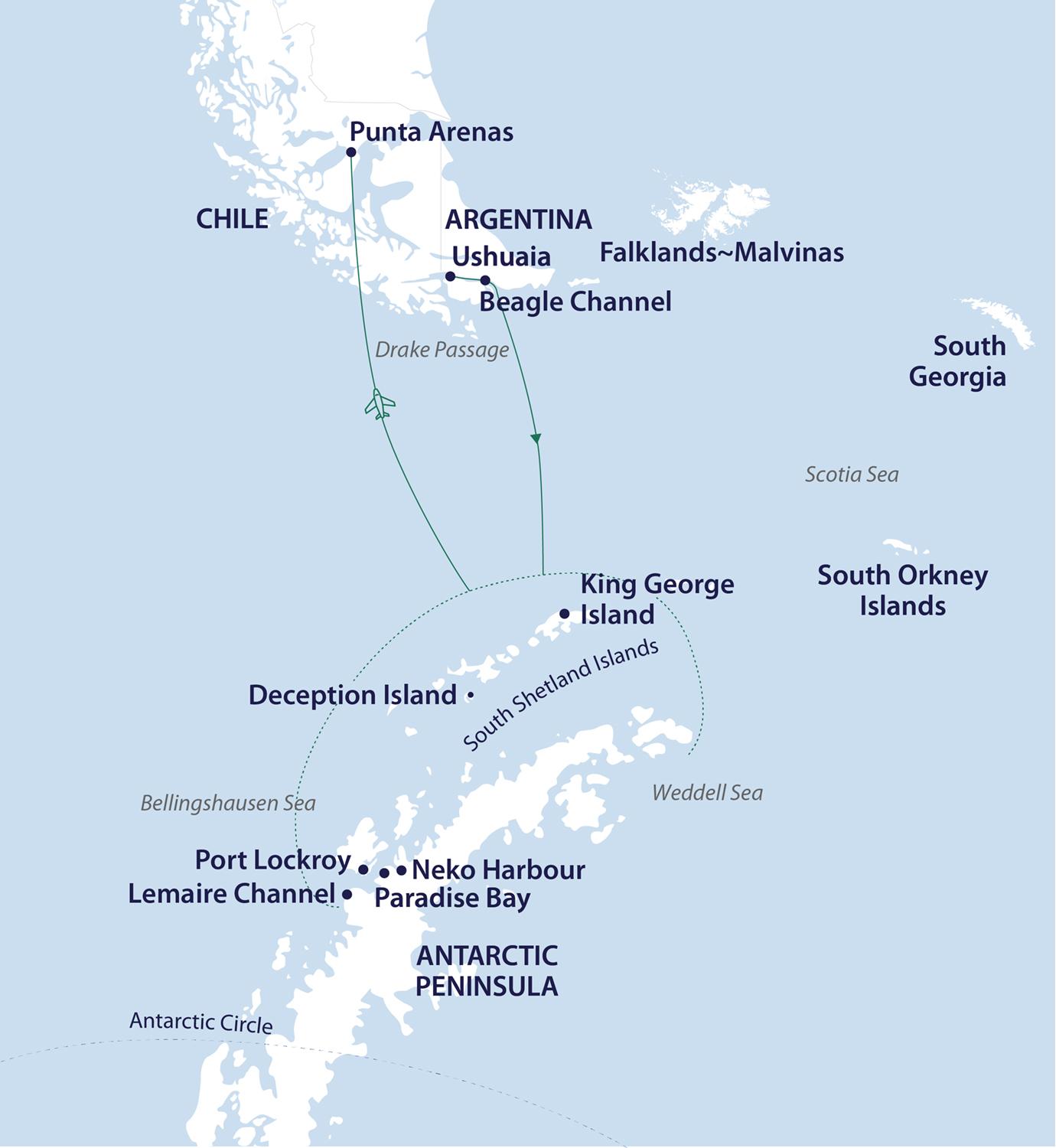 Charter flight King George Island to Punta Arenas on Day 9.