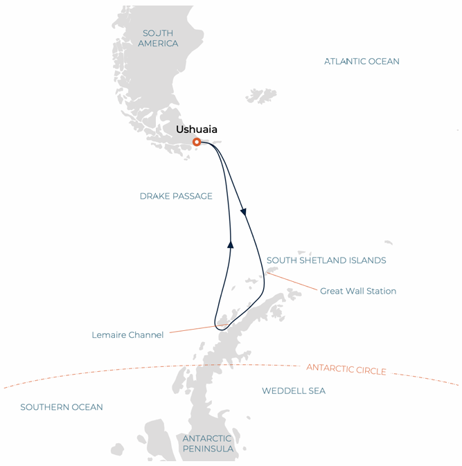 Los itinerarios son orientativos y dependerán de las condiciones climáticas y de hielo. Su Capitán y el Líder de Expedición realizarán los ajustes necesarios para garantizar la mejor experiencia posible.