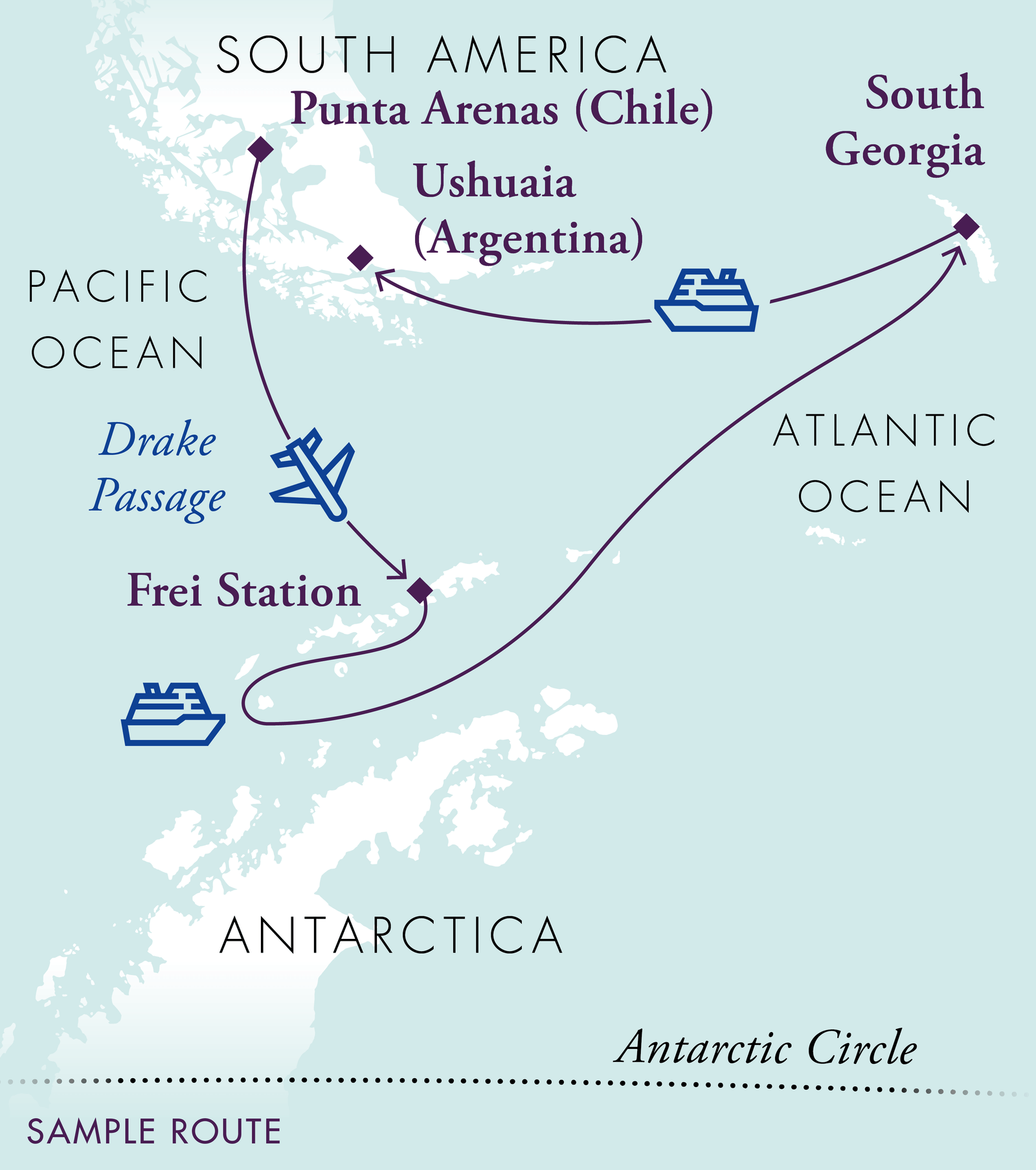 After two days at sea, the expedition reaches Elephant Island, where Shackleton's crew found refuge. The final four days are dedicated to exploring the Antarctic Peninsula, where your route is shaped by nature's shifting conditions, allowing the Expedition Team to select sites in the Gerlache Strait that showcase Antarctica's rich and diverse landscapes. Each day, guests disembark by Zodiac to explore the landscape with expert polar guides. The expedition concludes with a scheduled flight from King George Island in Antarctica back to Punta Arenas, Chile
