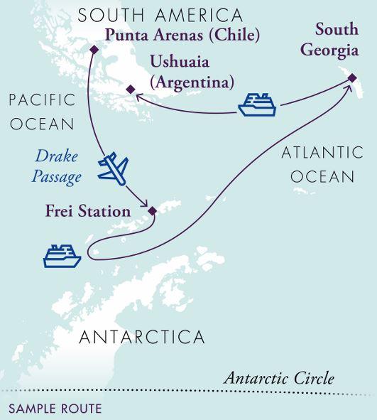 Fly over the Drake Passage to Antarctica and sail back to South America (Reverse Itinerary).
