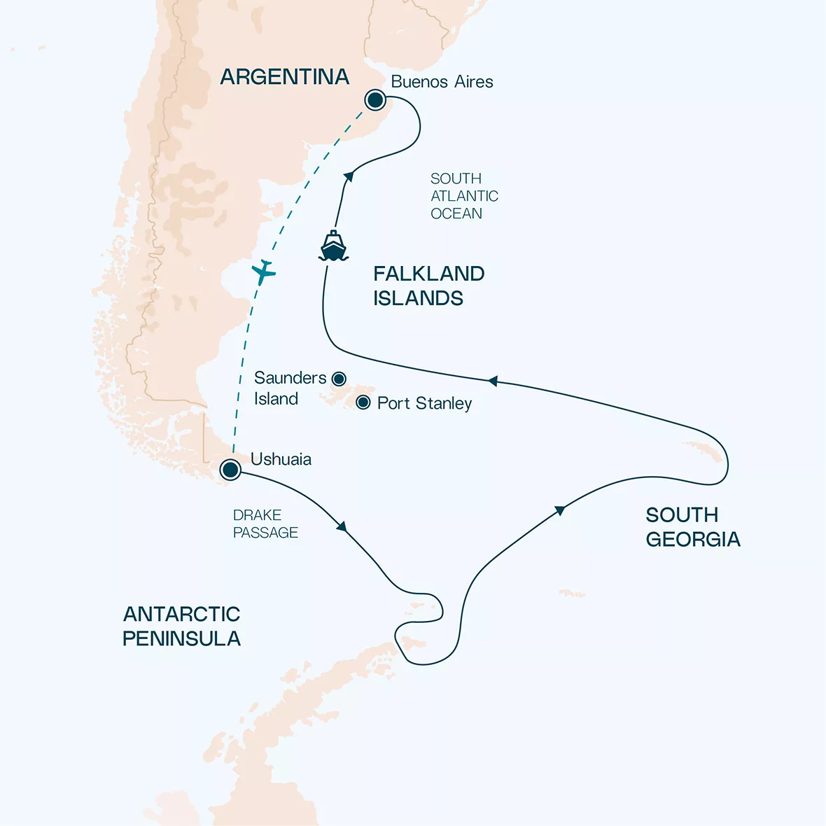 As you sail northward, the journey blends breathtaking scenery with cultural encounters, culminating in the lively atmosphere of Buenos Aires. This cruise promises a rare blend of exploration and refinement, with expert guides sharing their deep knowledge of the region's history, geography, and ecosystems. Whether you’re marveling at penguin colonies in South Georgia or enjoying the vibrant urban life at the journey’s end, The Southern Grand Passage offers an unforgettable expedition that connects you deeply with the spirit of the southern hemisphere and creates lifelong memories.