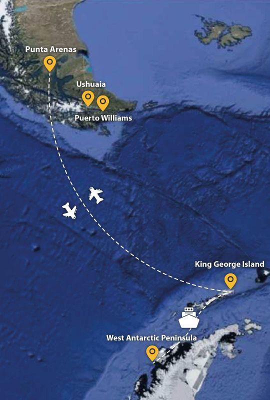 NOTA: Aceptar lo inesperado es parte del legado y la emoción de los viajes de expedición. Cuando viaje en regiones extremadamente remotas, el equipo de expedición debe permitir que el mar, el hielo y el clima guíen los detalles de la ruta y el itinerario. El itinerario es un resumen tentativo de lo que experimentará en este viaje, tenga en cuenta que no se puede garantizar un itinerario específico.