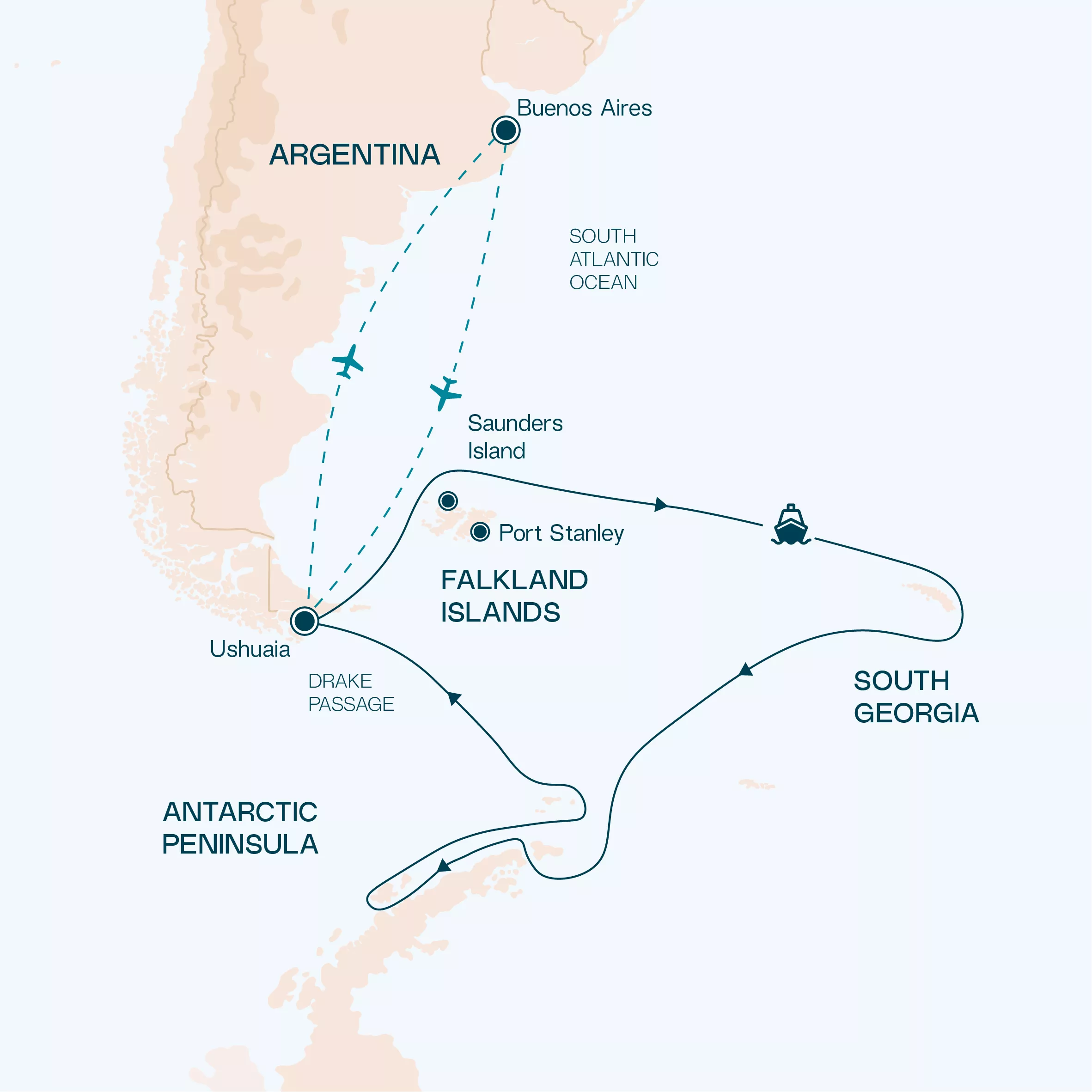 Los itinerarios son orientativos y dependerán de las condiciones climáticas y de hielo. Su Capitán y el Líder de Expedición realizarán los ajustes necesarios para garantizar la mejor experiencia posible.