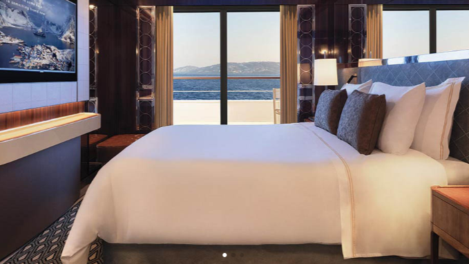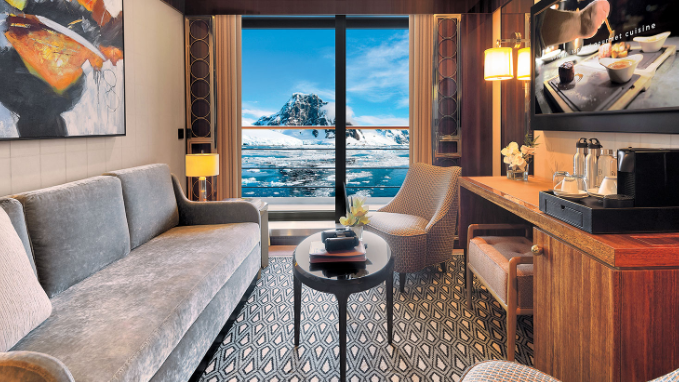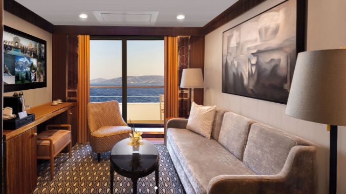 Serene and stylish, the Veranda Suite blends comfort with thoughtful sophistication. Whether you’re sipping coffee on your private veranda or gazing out from a panoramic picture window, each suite invites connection with the world beyond. Amenities such as a fully stocked in-room minibar, 24-hour room service, marble spa bathroom, and L’OCCITANE bath products ensure every detail enhances your time at sea with ease and elegance.