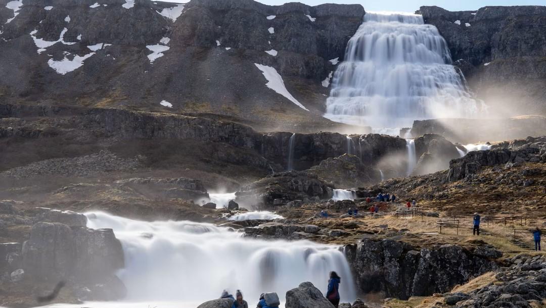 Sienta el poder y la belleza de la cascada Dynjandi en los Fiordos Occidentales de Islandia, rodeada de cielos cambiantes y paisajes impactantes.