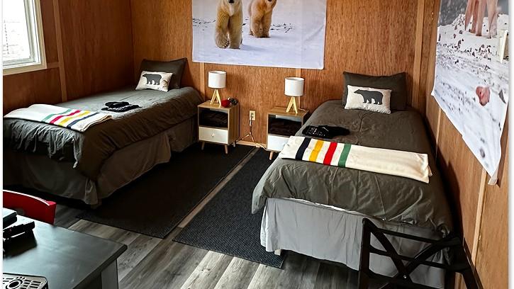 Los alojamientos incluyen un hotel de cuatro estrellas en Winnipeg y cabañas remotas (Polar Bear Cabins) con baños privados.