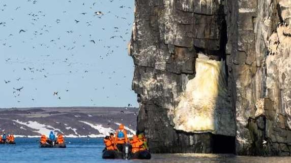 Navigation through Hinlopen Strait and the Alkefjellet bird cliffs.