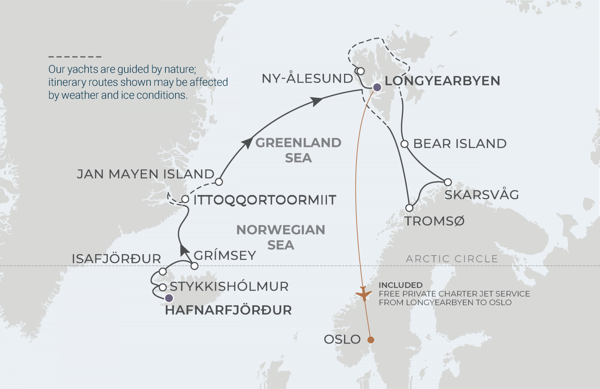 Los itinerarios son orientativos y dependerán de las condiciones climáticas y de hielo. Su Capitán y el Líder de Expedición realizarán los ajustes necesarios para garantizar la mejor experiencia posible.