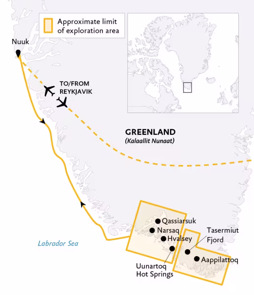 Explore los paisajes más salvajes del sur de Groenlandia, desde icebergs imponentes hasta la histórica cultura vikinga. Visite asentamientos remotos, camine por la "Patagonia Ártica" y descubra ruinas norse en un viaje inolvidable de 12 días.