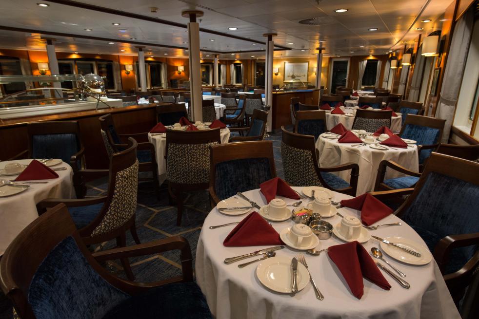 Ocean Adventurer es un confortable buque con espaciosas cabinas, todas con baños privados y vistas al exterior. Un Clásico de las aguas Polares.