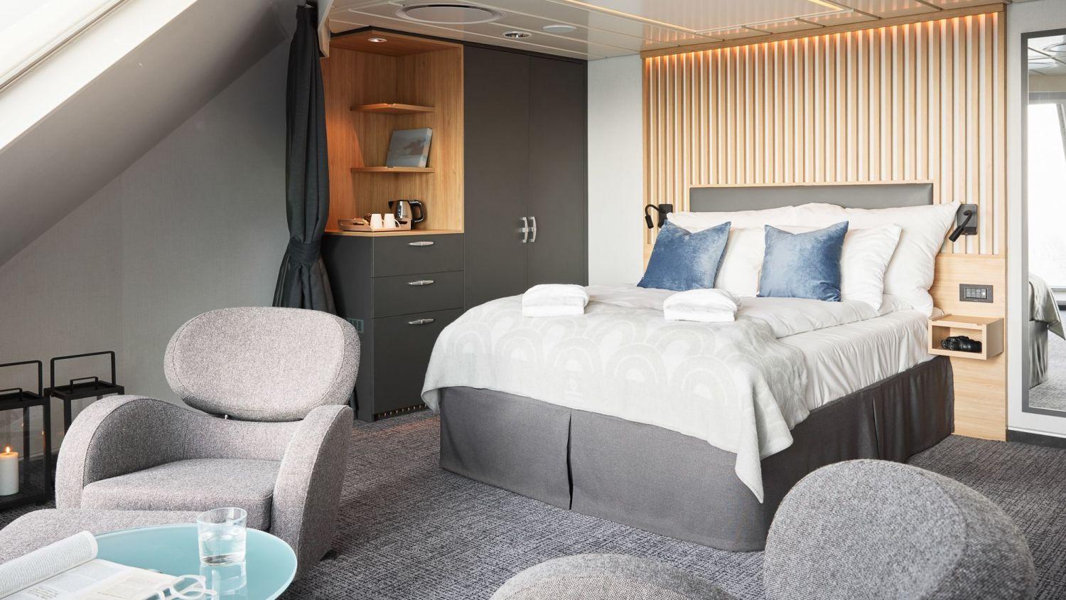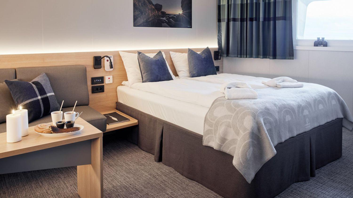 La decoración interior de los barcos está inspirada en el mar, el cielo, las montañas y los glaciares, y la comida que servimos son platos tradicionales de las ciudades y pueblos de la ruta.